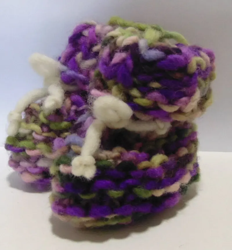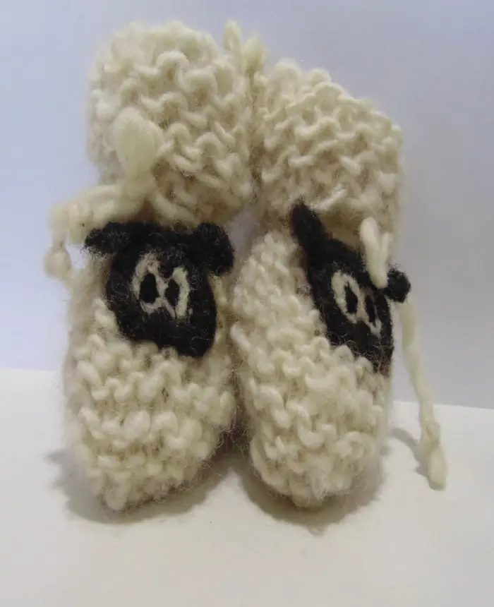 Pantuflas de lana para bebé suaves y abrigadas, hechas a mano con lana 100% natural de oveja en Chiloé. Perfectas para mantener a tu guagua cómoda y protegida con artesanía autentica.